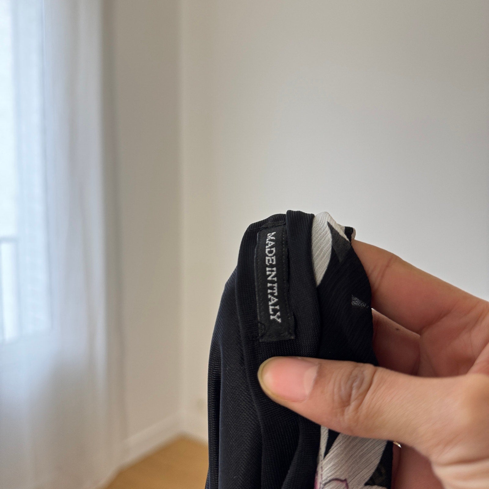 Vintage Italian Black Daisy Floral Mesh Midi Skirt Asymmetrical Ruffle Trim (S)