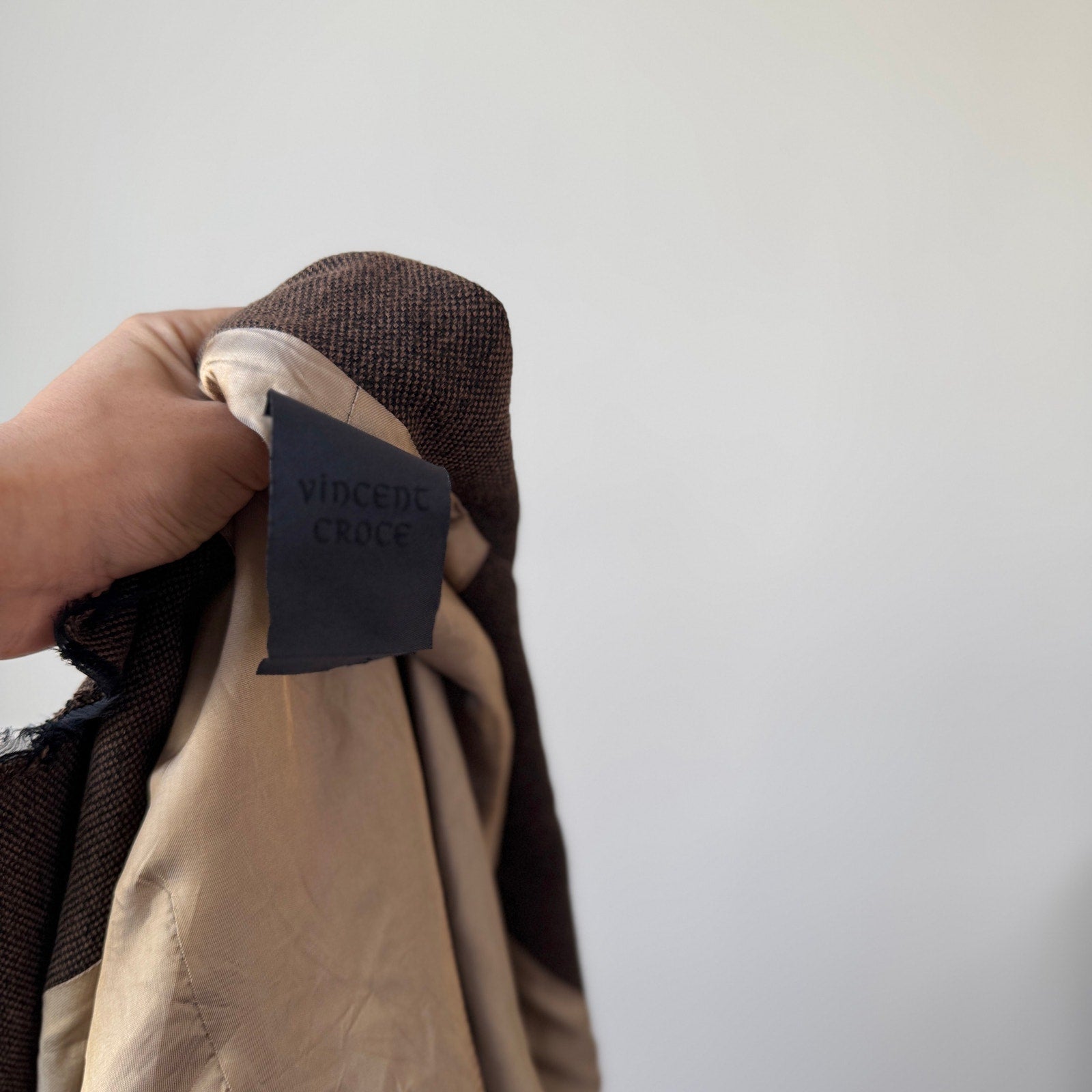 Vintage Italian Brown Tailored Jacket Raw Edge Trim Fitted Blazer (S/M)