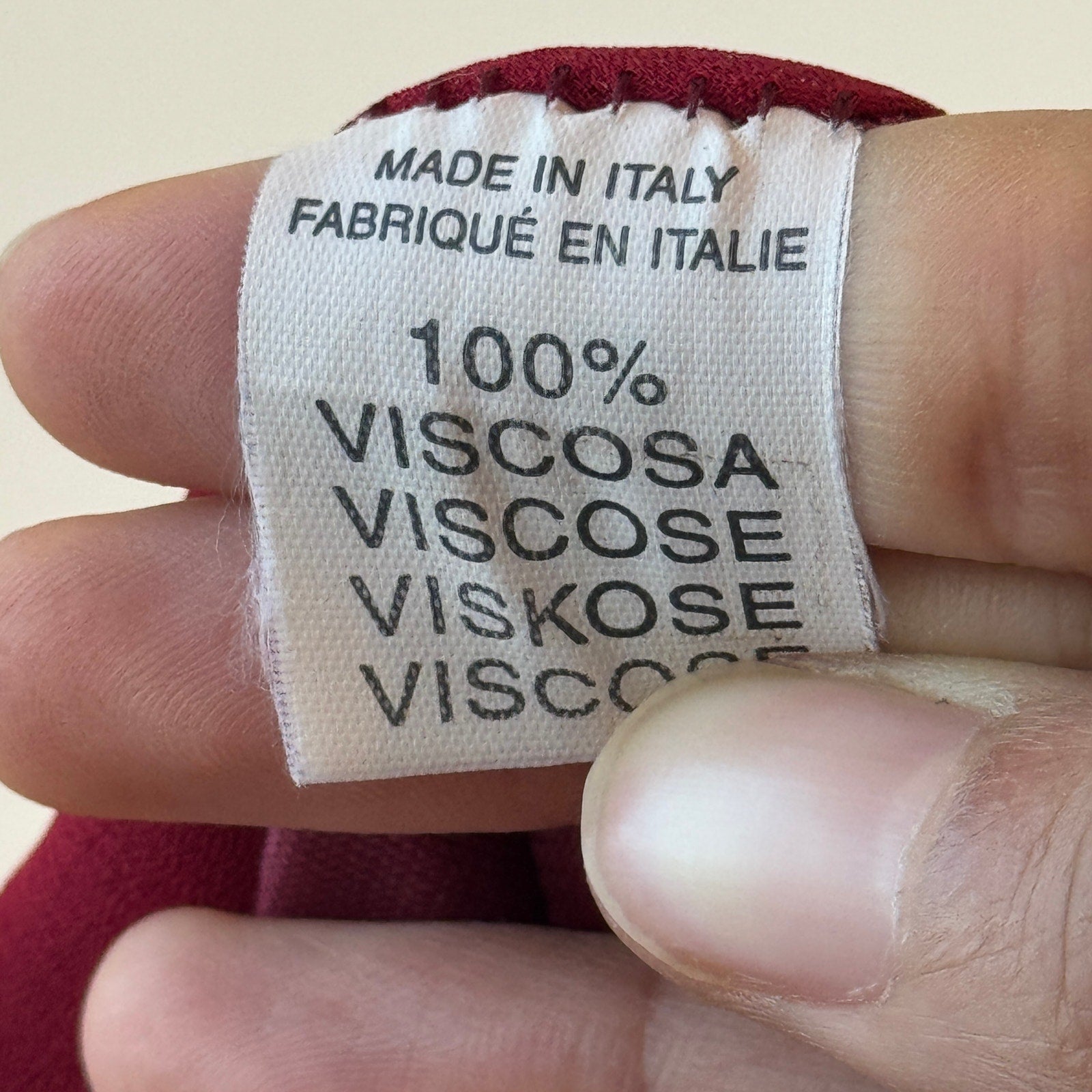 Italian vintage mesh maxi skirt in a rich burgundy tone. 100% viscose. Stretchy pull-on waistband. Low rise fit. Made in Italy.