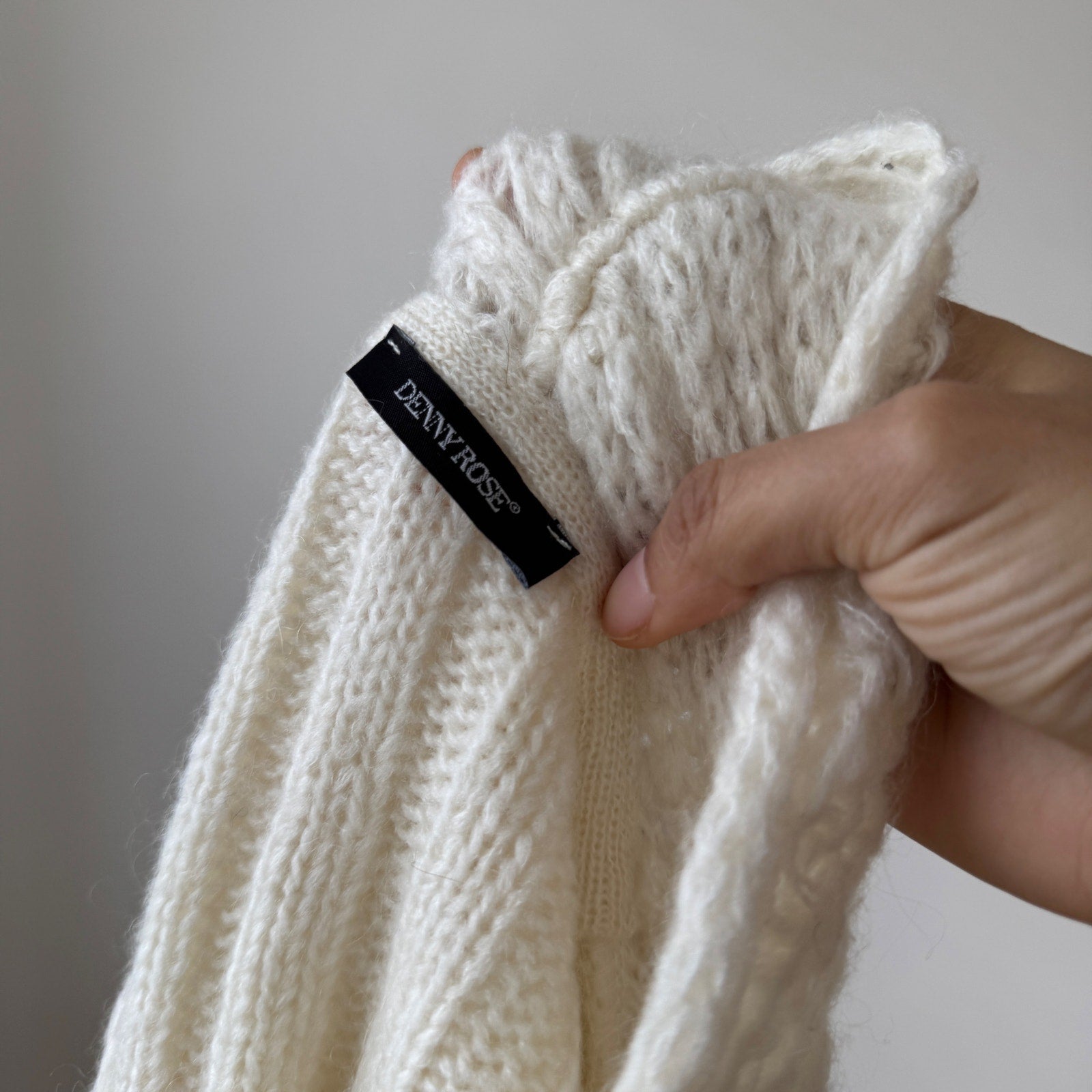 Vintage Italian cream cropped kid mohair blend knit cardigan by Denny Rose (S)