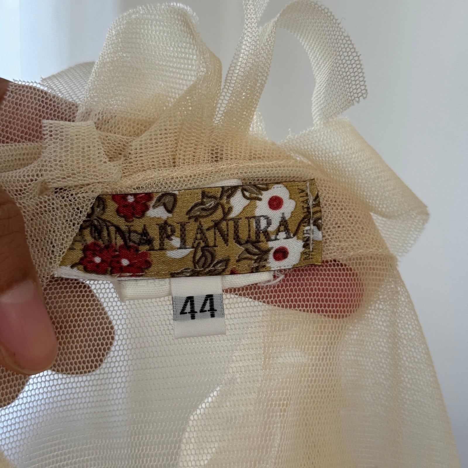 Vintage Italian cream ruffle applique sheer mesh tie-front top (Small/Medium)