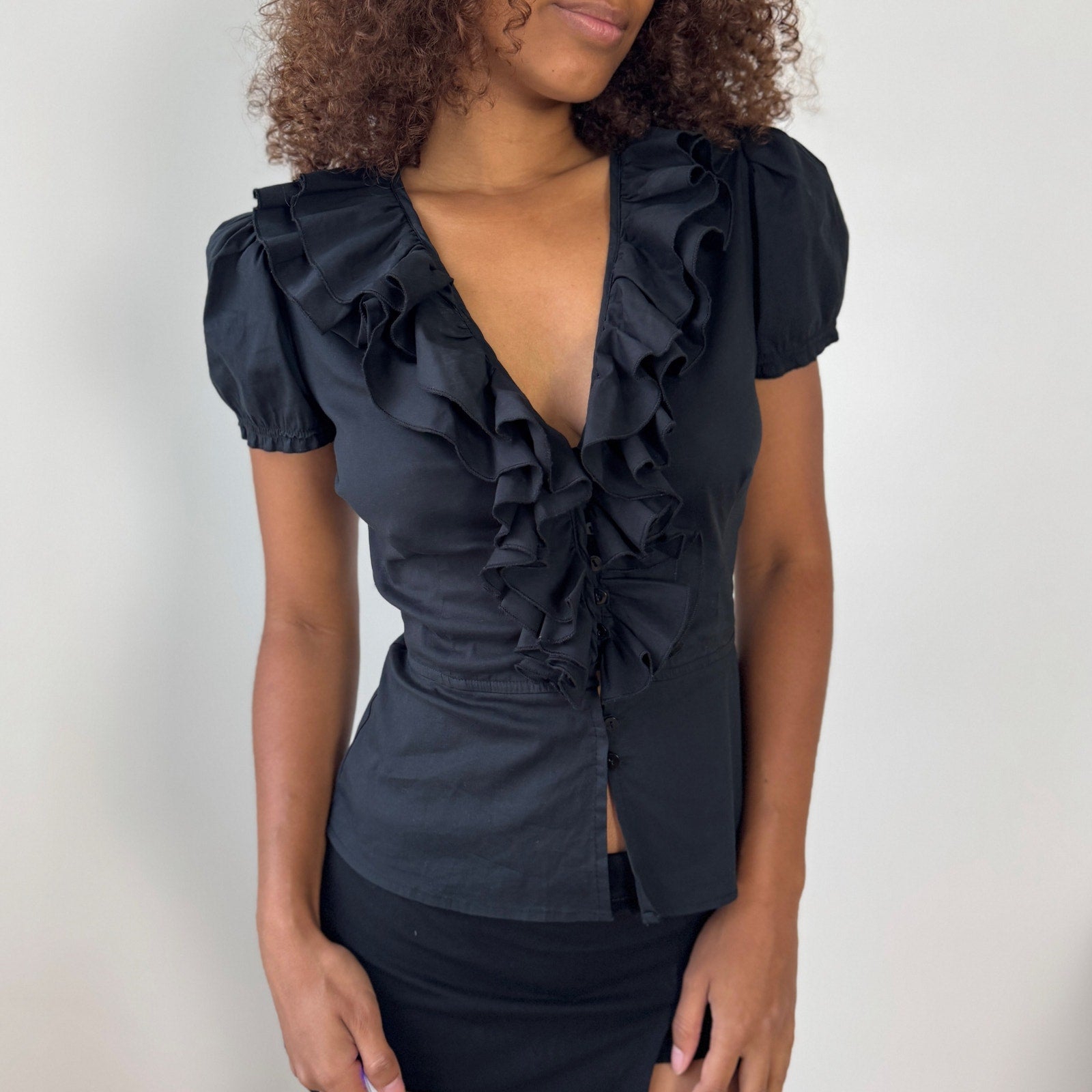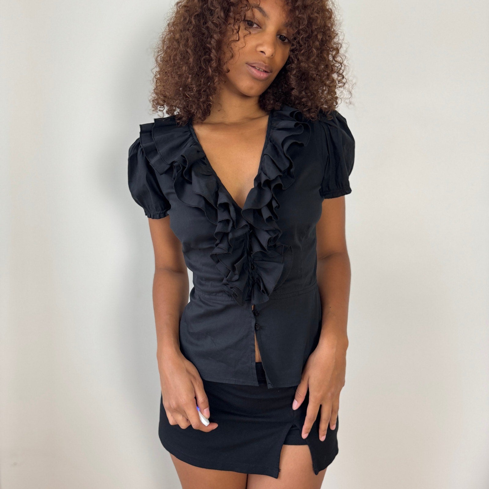 Vintage Italian Ruffle Front Button-Up Blouse (XS/S)