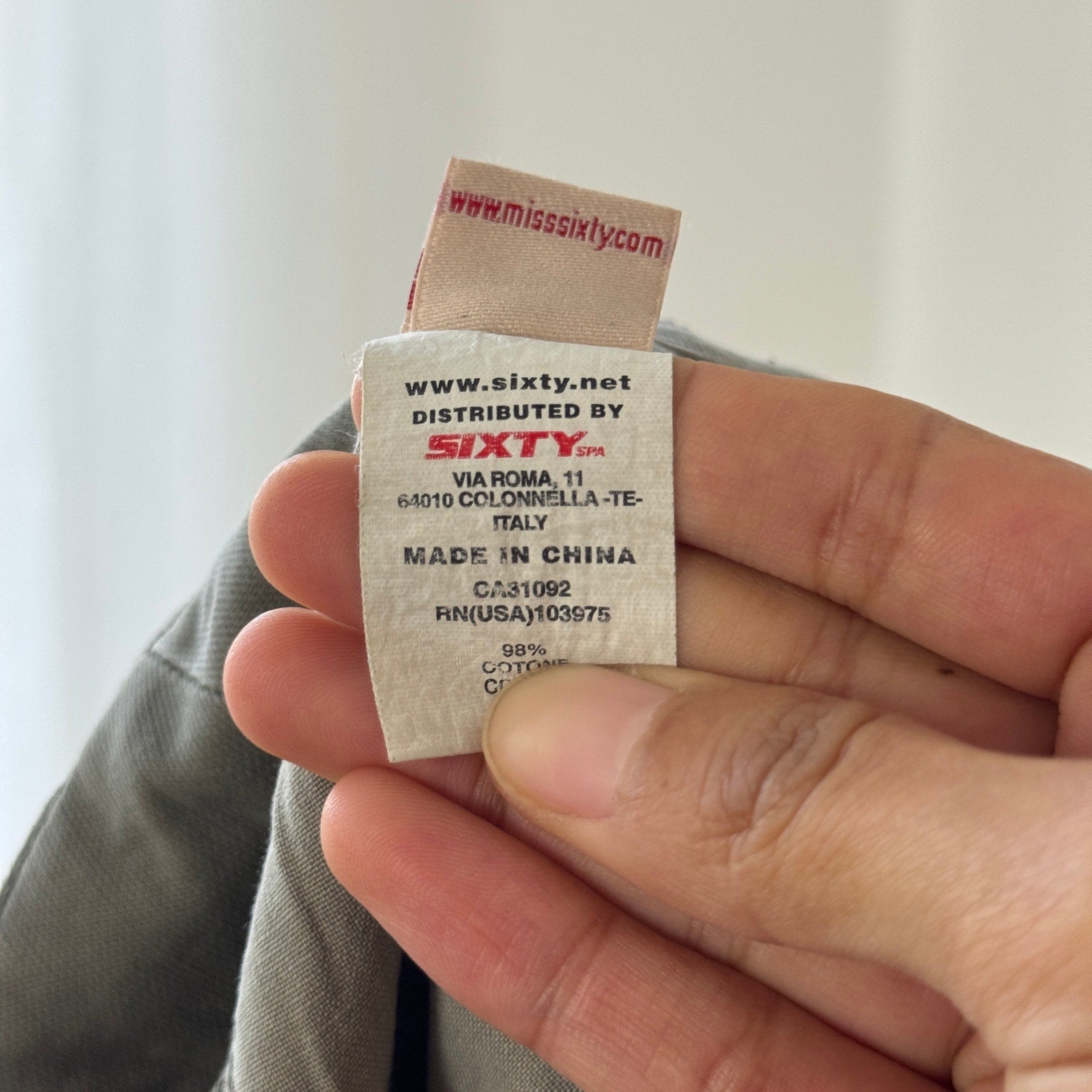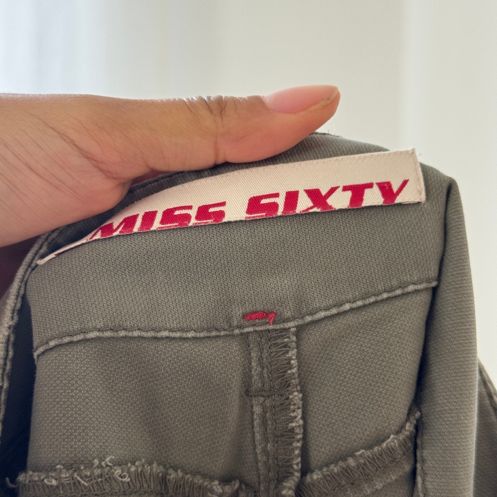 Rare Y2K Miss Sixty capri pants in a washed sage green with signature contrast paneling and ultra-flattering seam work. Features flap pockets with embroidered branding, a mid-rise fit, and that iconic Miss Sixty attitude. Structured yet comfy cotton with slight stretch.