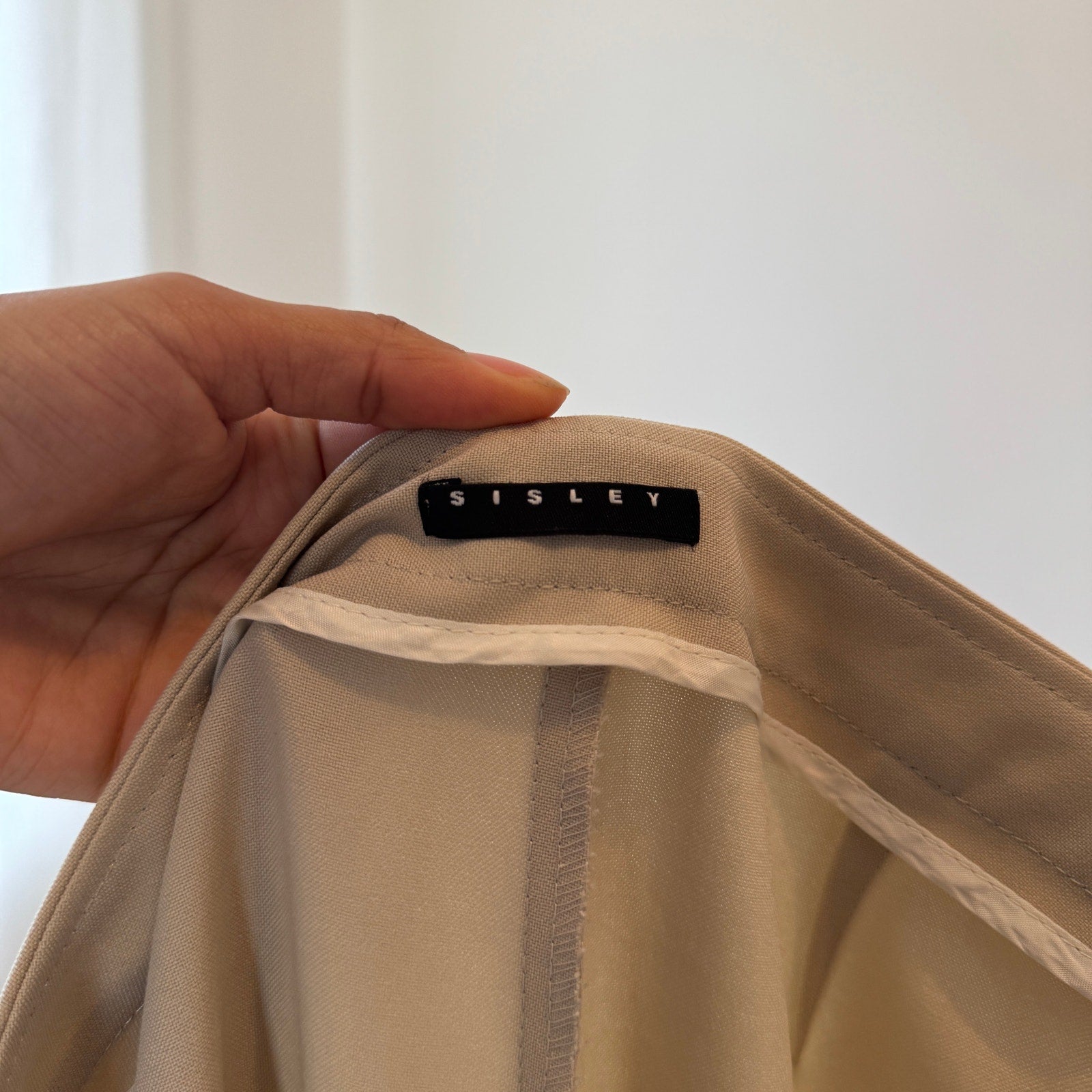 Chic and timeless vintage Sisley trousers, made in Italy from a beautifully structured cream fabric that drapes effortlessly. Features a clean mid-rise waist, tailored seams, and a subtle flare leg that gives that classic European silhouette. The quality and fit make them a perfect staple piece for dressing up or down.