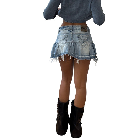 Italian Vintage Low Rise Light Wash Denim Ruffle Mini Skirt (XS/S)