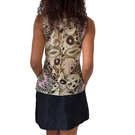 Vintage Y2K mesh abstract floral lace-up top (M)