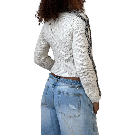 Vintage Italian Cream & Black Chunky Cable Knit Cropped Sweater (XS)