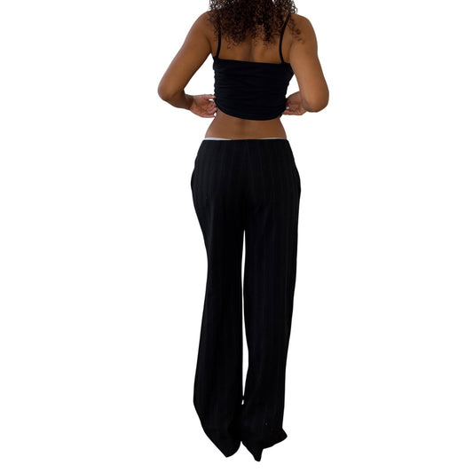 Vintage Euro Black Tonal Pinstripe Low Rise Wide Leg Trousers (Small)