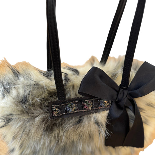 Vintage Italian Leopard Print Faux Fur Satin Bow Shoulder Bag