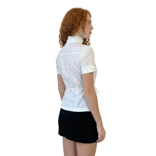 Vintage Morgan de Toi Ruffle High-Neck Sheer Cotton Blouse (S)